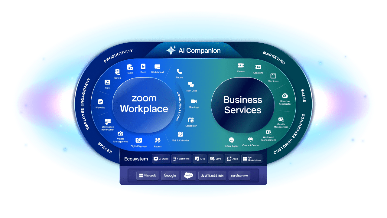 Wir orchestrieren die Zoom Plattform als Rückgrat für Zusammenarbeit und Unternehmensprozesse: Meetings, Telefonie, Rooms, Workplace/ Workflows, Events, Contact Center und mehr.
